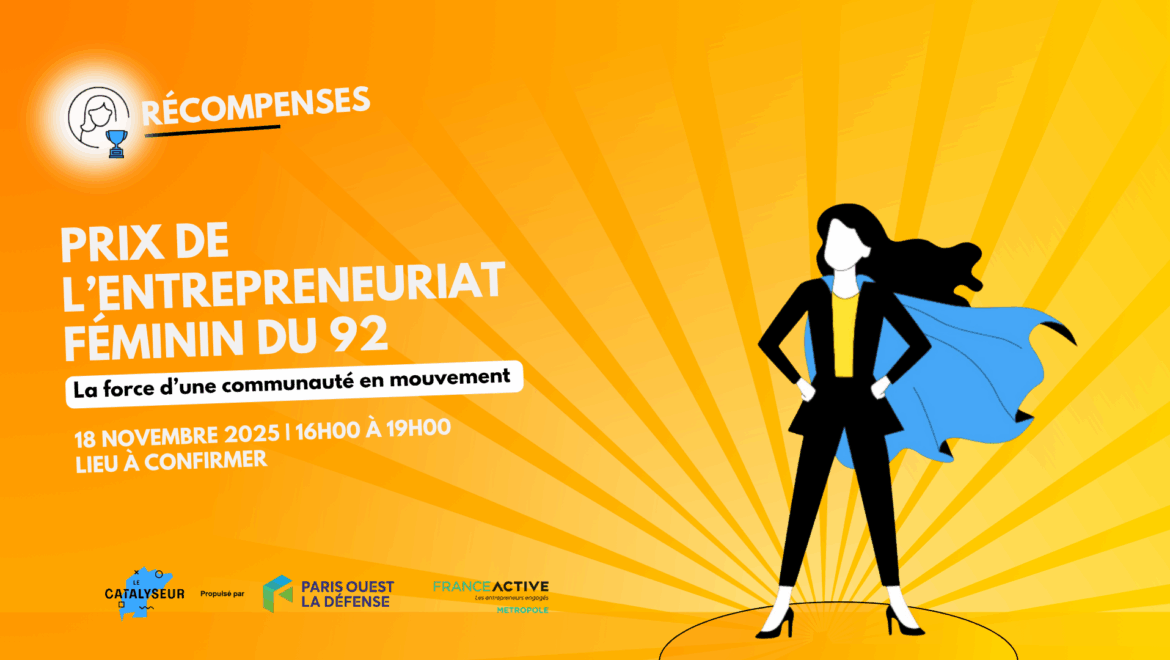 Le Catalyseur de Paris Ouest La Défense, en partenariat avec France Active Métropole, organise la 3ème édition du « Prix de l’Entrepreneuriat Féminin du 92 » !