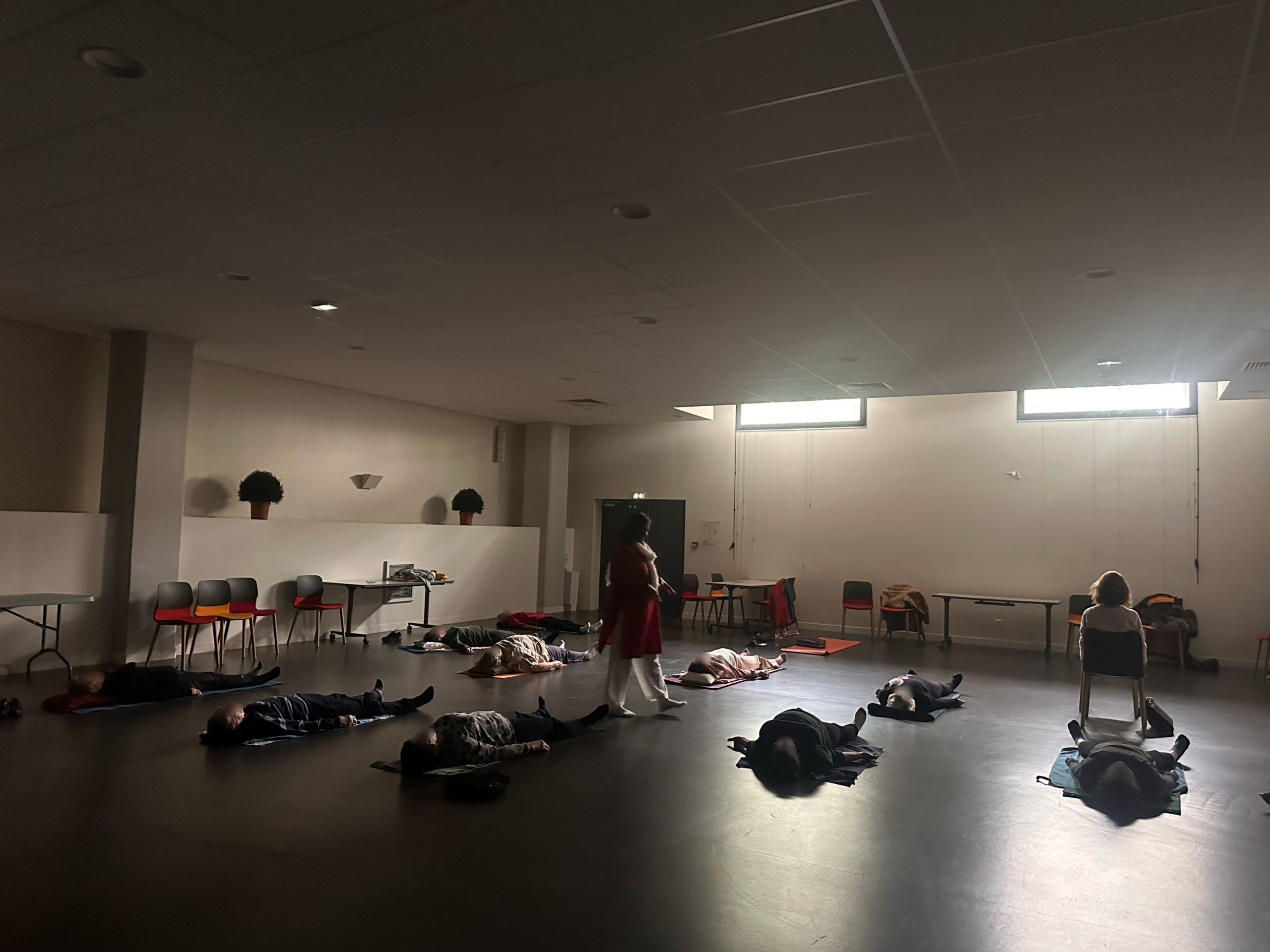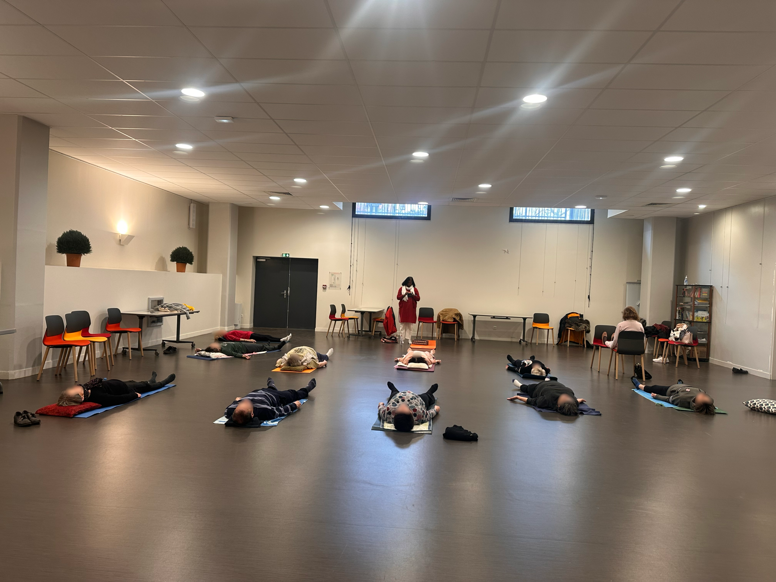 Dans une ambiance apaisante, lumières tamisées, musique relaxante et exercices de respiration, chacun a pu profiter d’un véritable moment de détente et de recentrage.