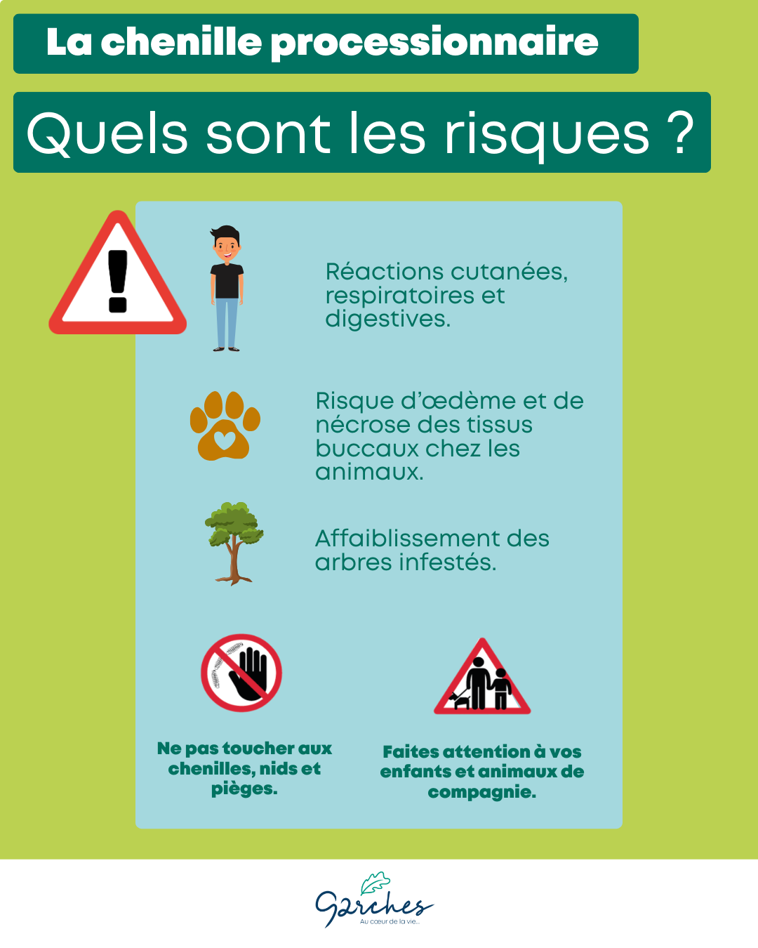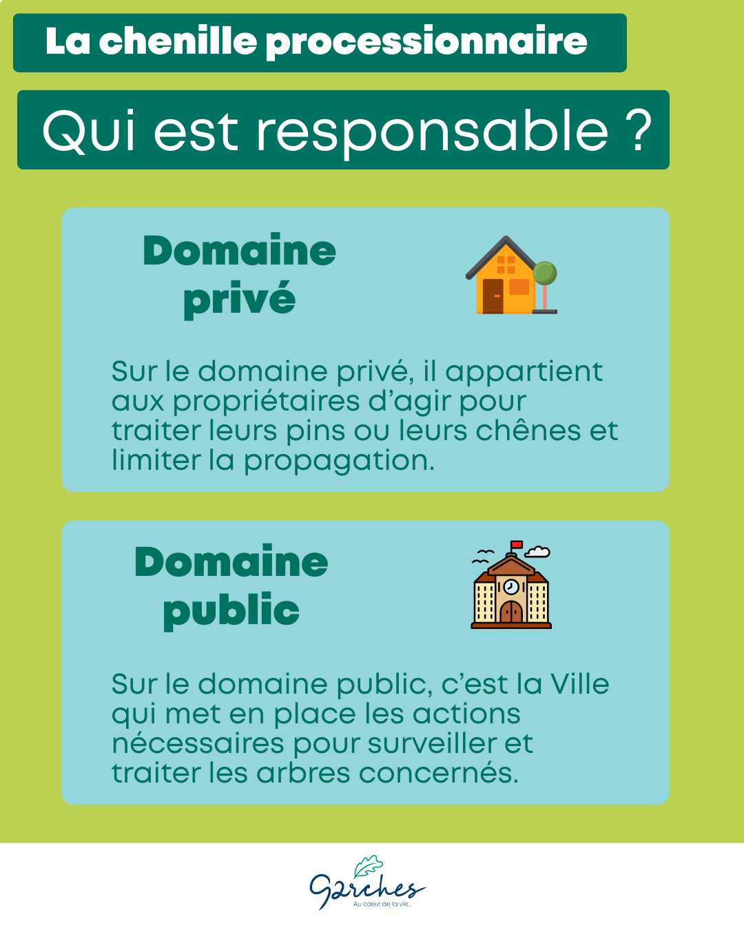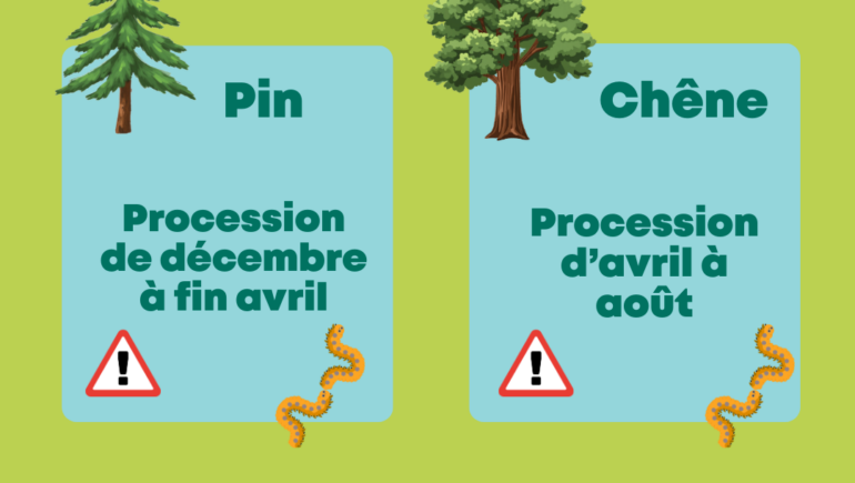 Le traitement des chenilles processionnaires dont l’origine se trouve dans le domaine privé relève des propriétaires.
