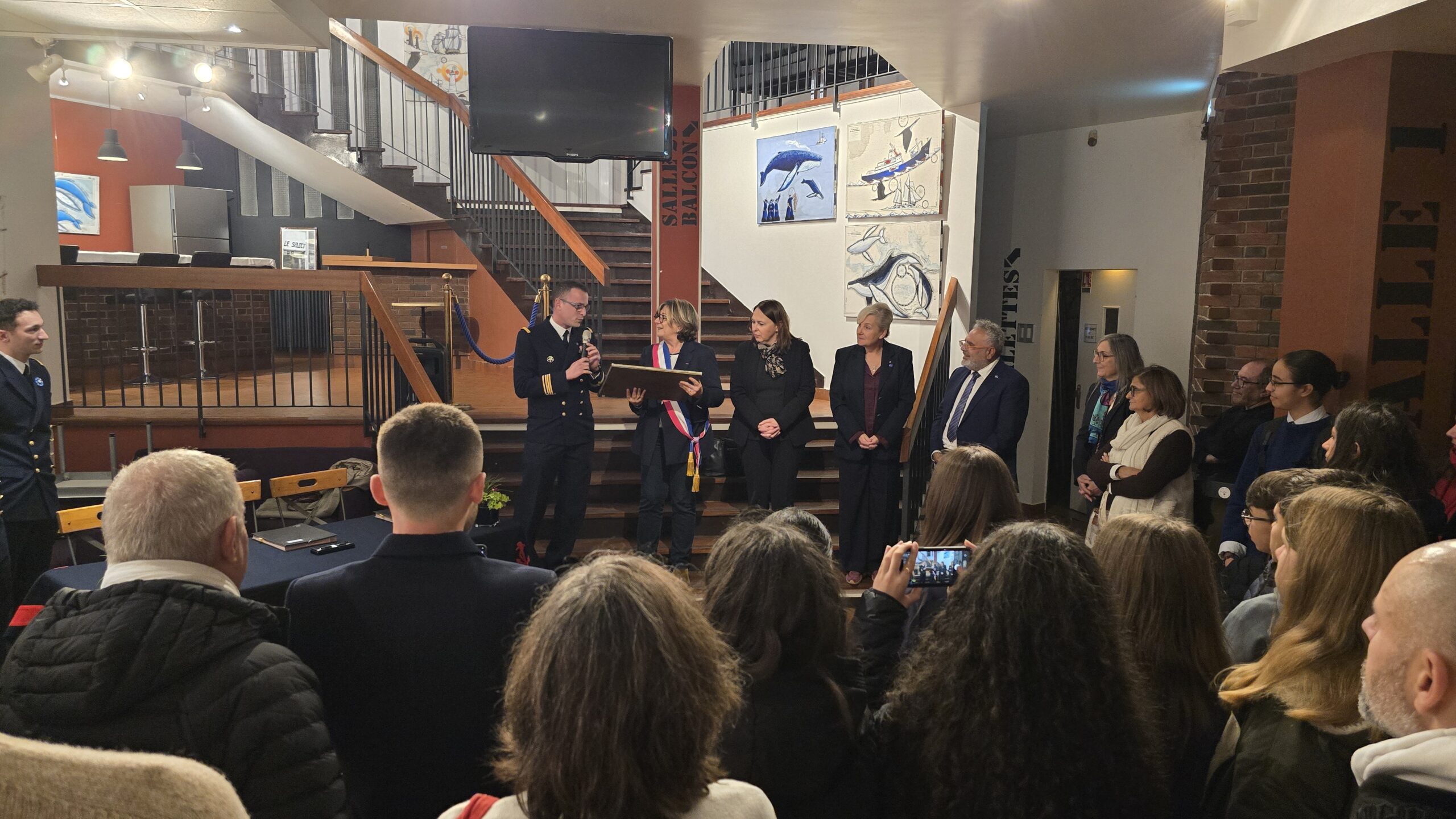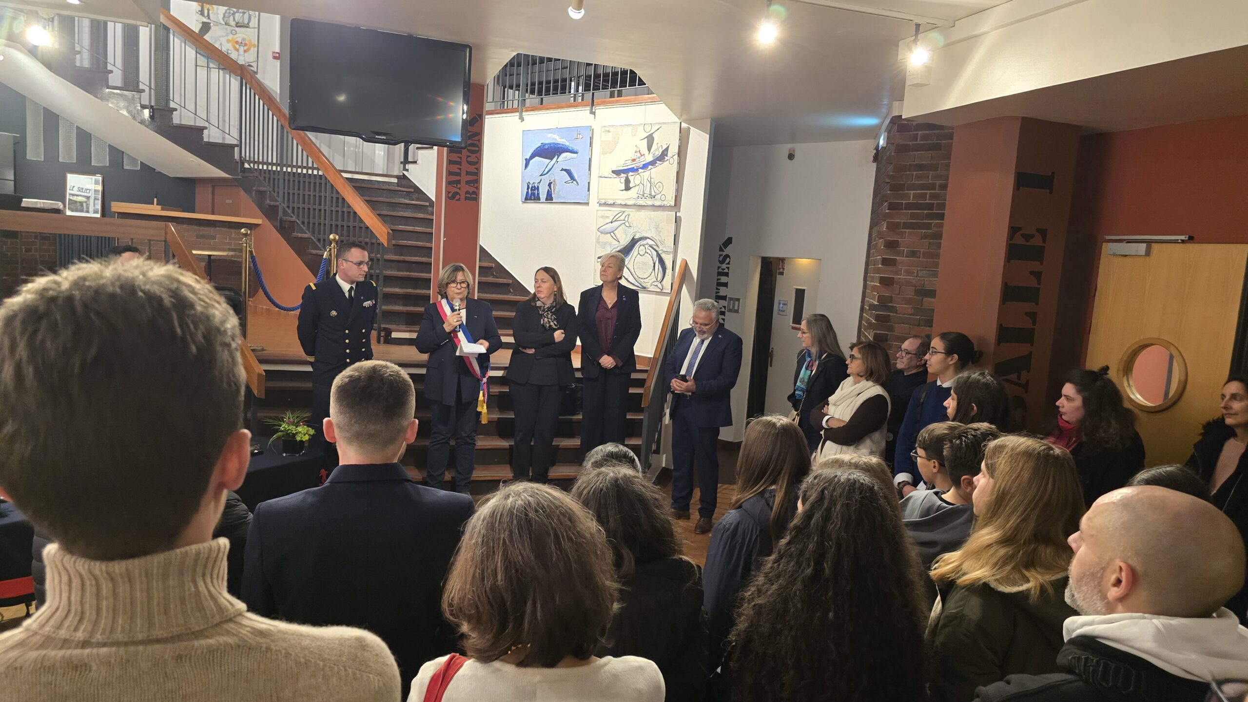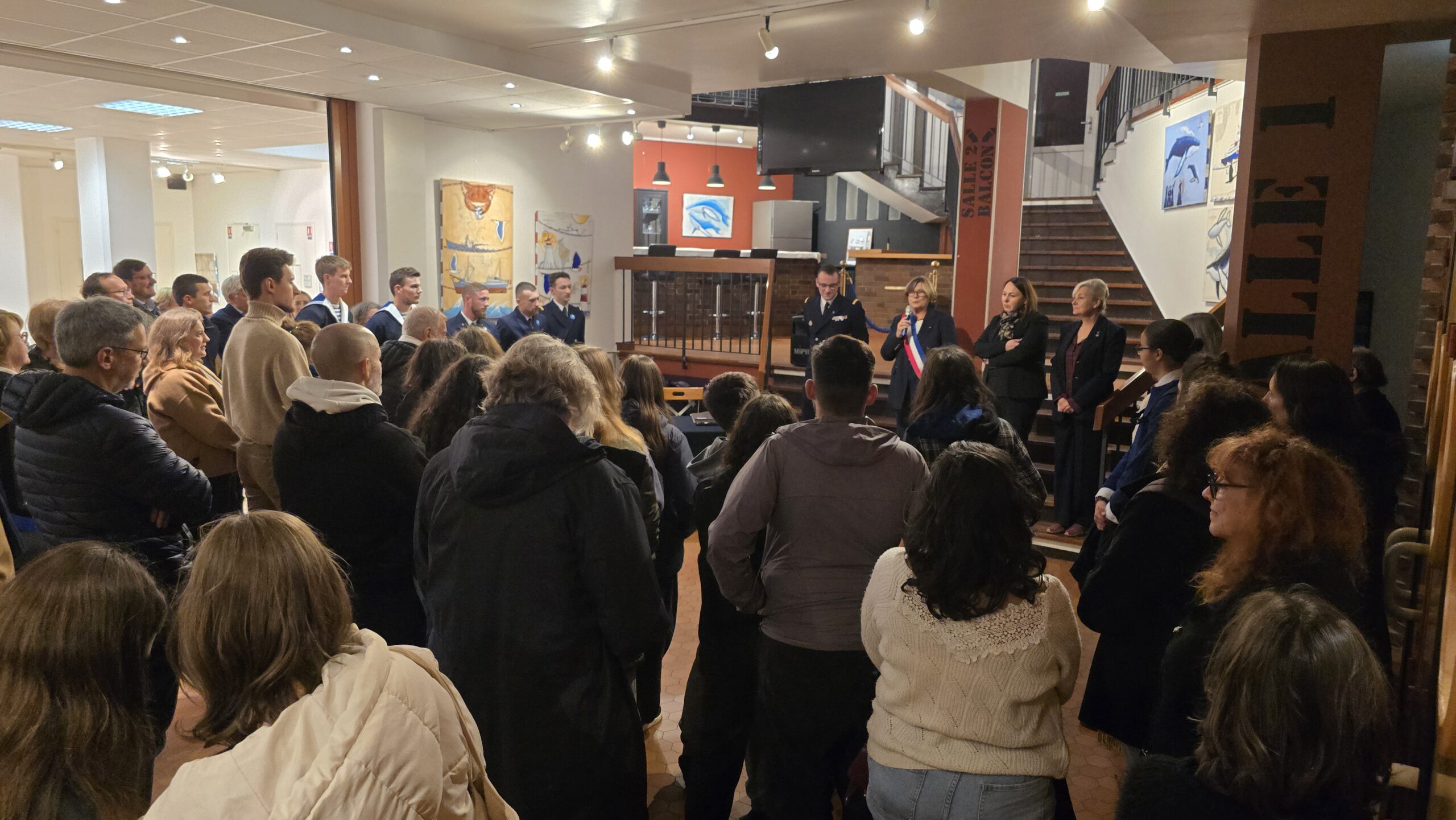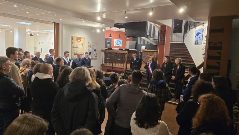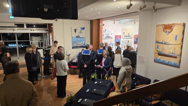 Lors du vernissage, Cécile Dumont-Dayot, porte-parole de la Marine et Chef du SIRPA Marine, honorait l’événement de sa présence ainsi que Jeanne Bécart, Maire de Garches, ses élus et la délégation de la Thétis.