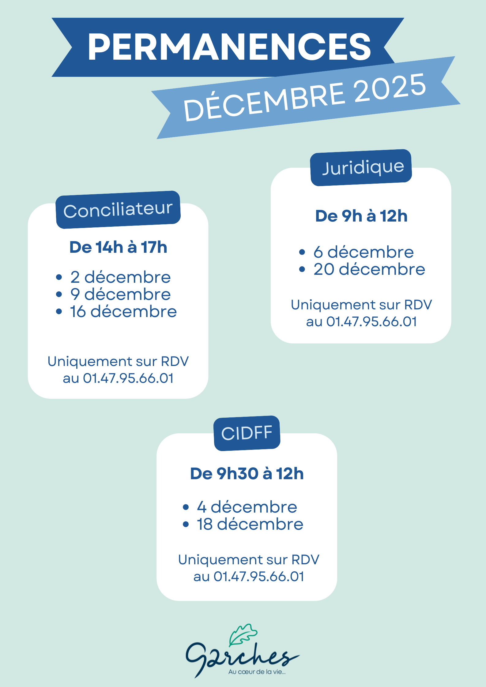 La Ville vous informe des dates des permanences du mois de décembre 2025 en Mairie.