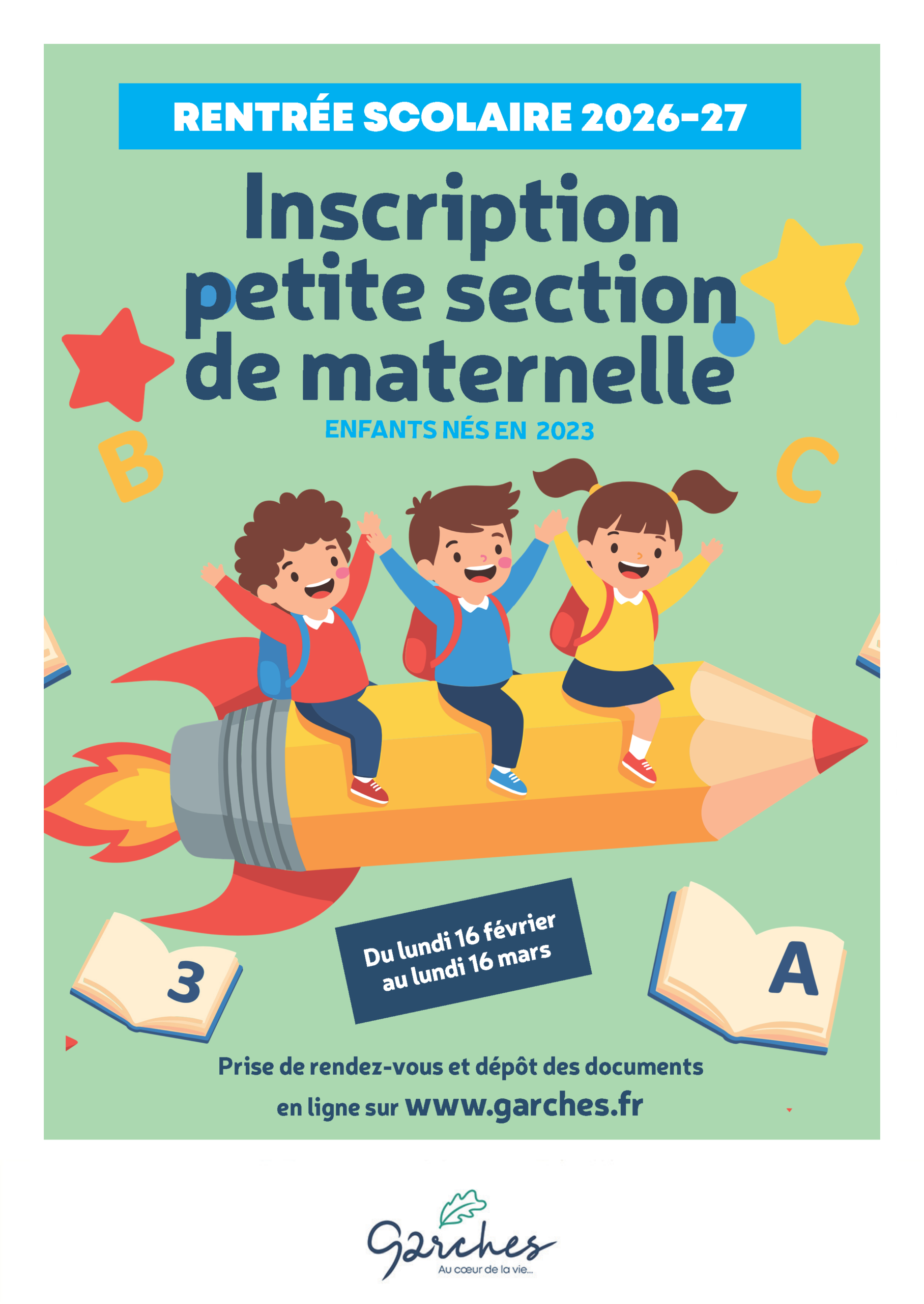 La campagne d’inscription scolaire des enfants (nés en 2023) entrant en petite section de maternelle pour l’année 2026-2027 se déroulera du lundi 16 février au lundi 16 mars 2026.