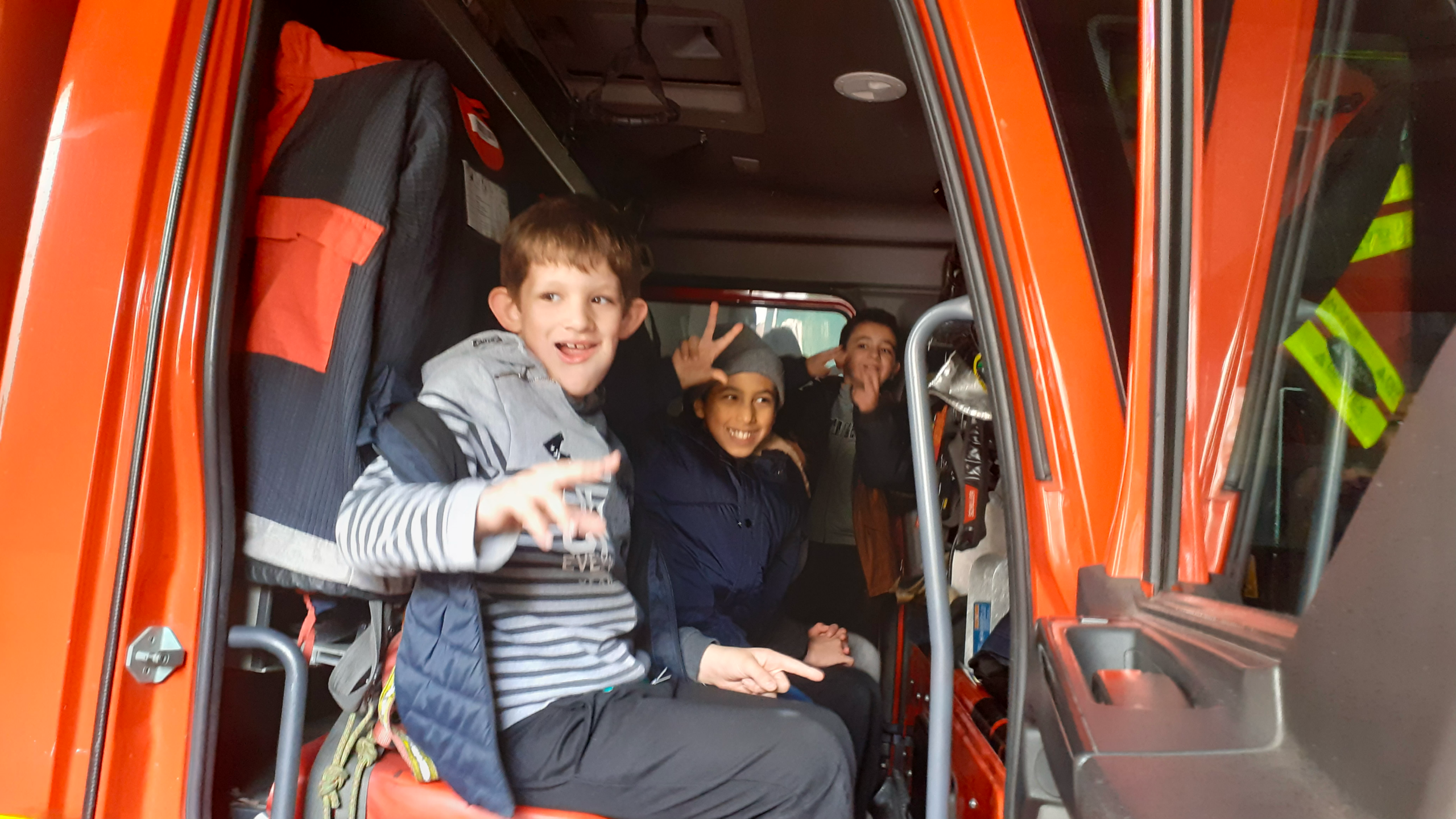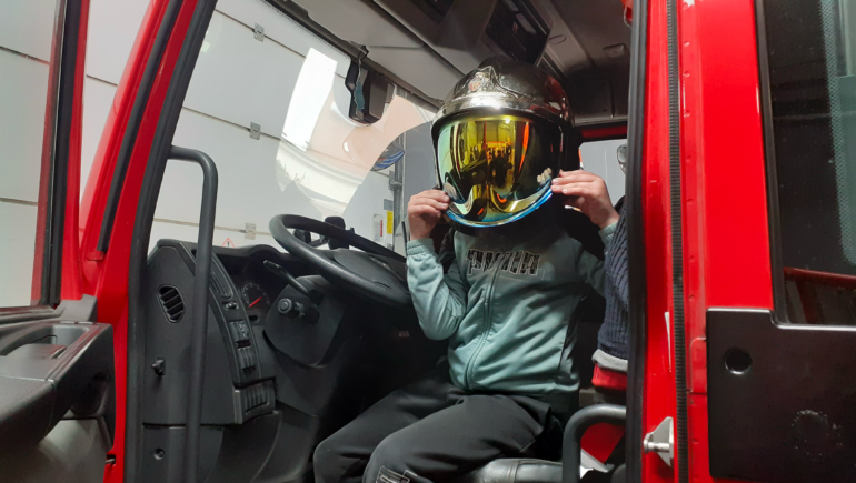 Les élèves ont même pu monter à bord des camions, essayer un casque et une combinaison et s’initier au maniement de la lance à eau pour leur plus grand plaisir.