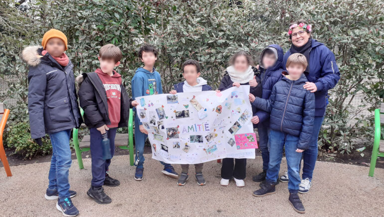 Ce conte invite les enfants à découvrir la naissance d’une amitié inattendue, dépassant les différences et capacités de chacun. Les élèves ont donné vie à cette histoire en réalisant une œuvre collective : la création d’un poster géant sur l’amitié en collant des photos d’animaux.