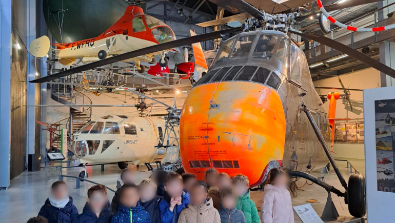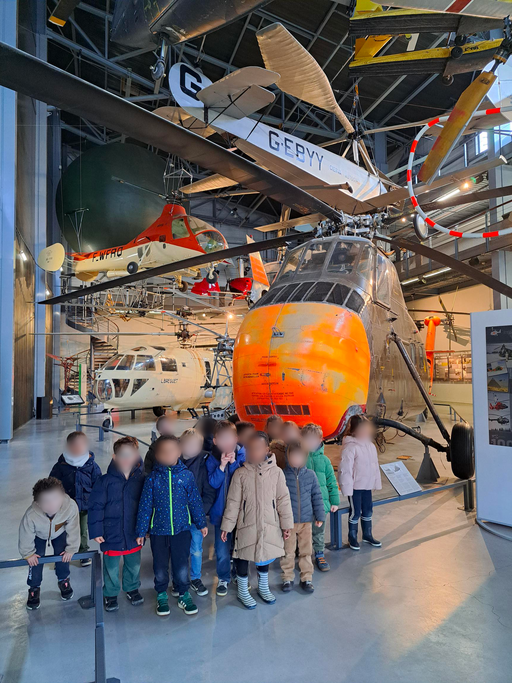 Les enfants ont parcouru les différents halls du musée et ont découvert les premiers avions, le Concorde, l’A380, des avions militaires, des hélicoptères, ainsi que des fusées et des satellites, pour leur plus grande joie !