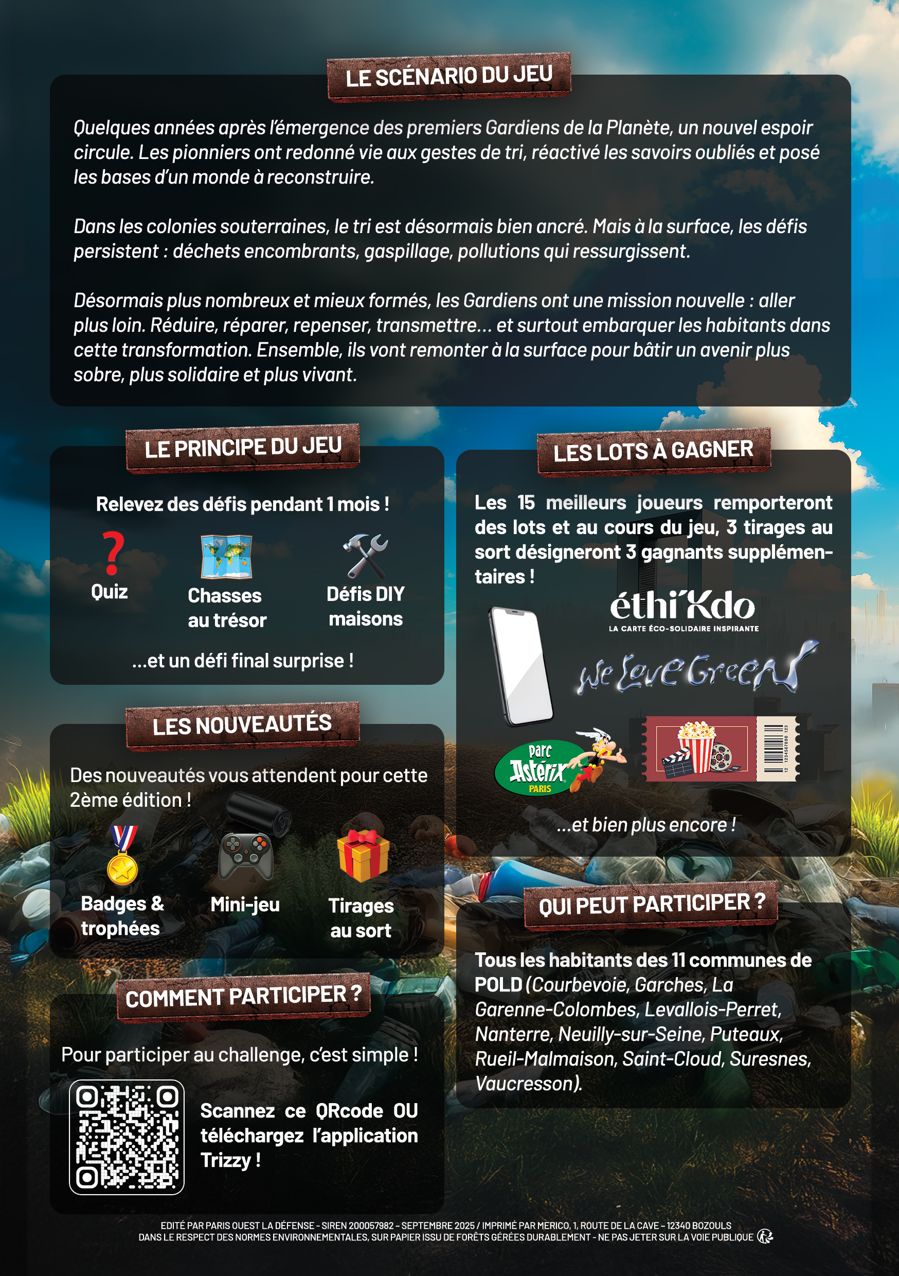 Lancé en 2024, le jeu avait séduit des centaines de participants grâce à sa formule originale qui mêle apprentissage et amusement. Cette année encore, chacun pourra se mettre dans la peau d’un “gardien de la planète” à travers des quiz interactifs, des petits défis à réaliser à la maison ou encore des chasses au trésor organisées dans les communes du territoire. L’expérience est pensée pour être accessible à tous et rassembler toutes les générations, des plus jeunes aux seniors, autour d’un objectif commun : apprendre à réduire ses déchets au quotidien tout en passant un bon moment.