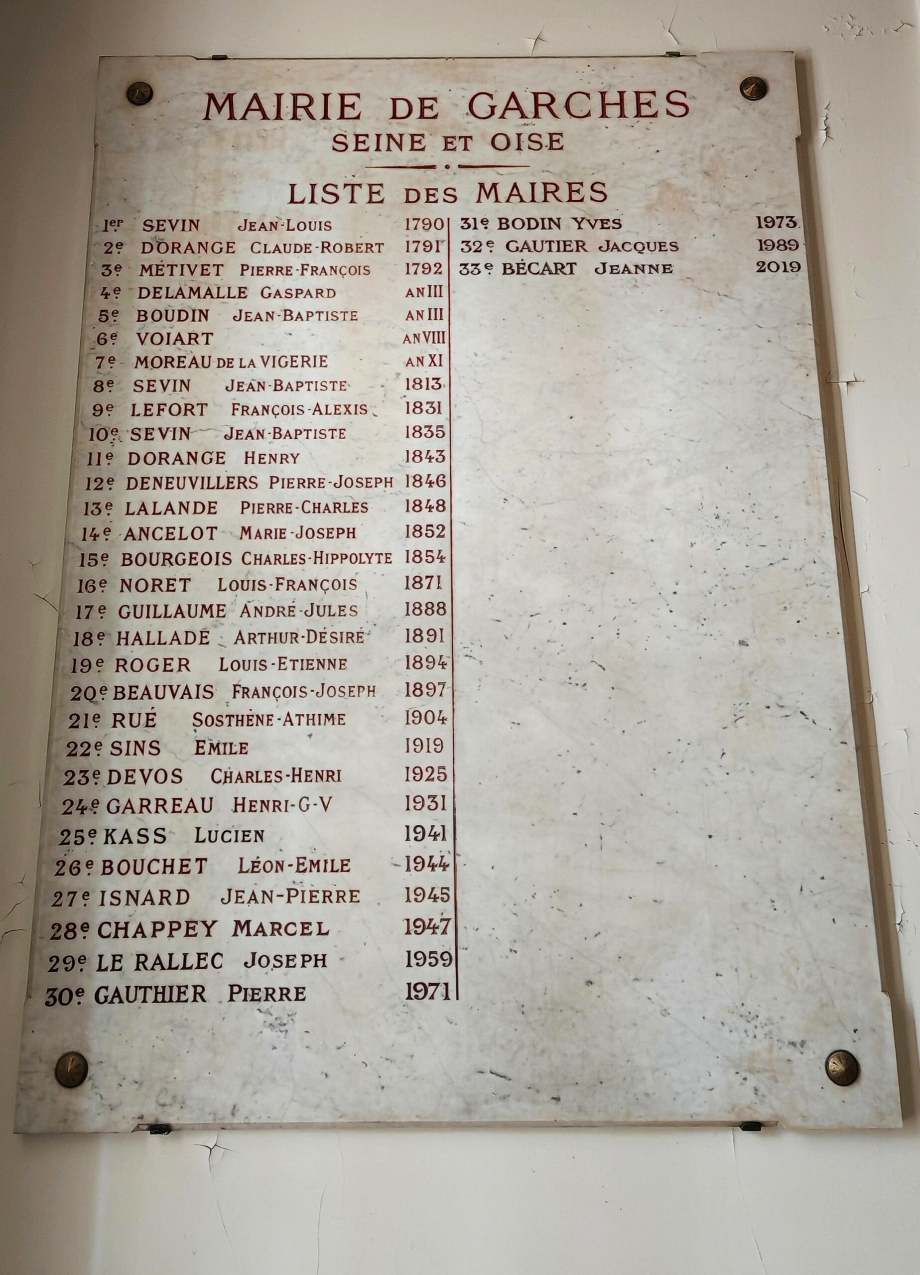 Plaque des maires de Garches