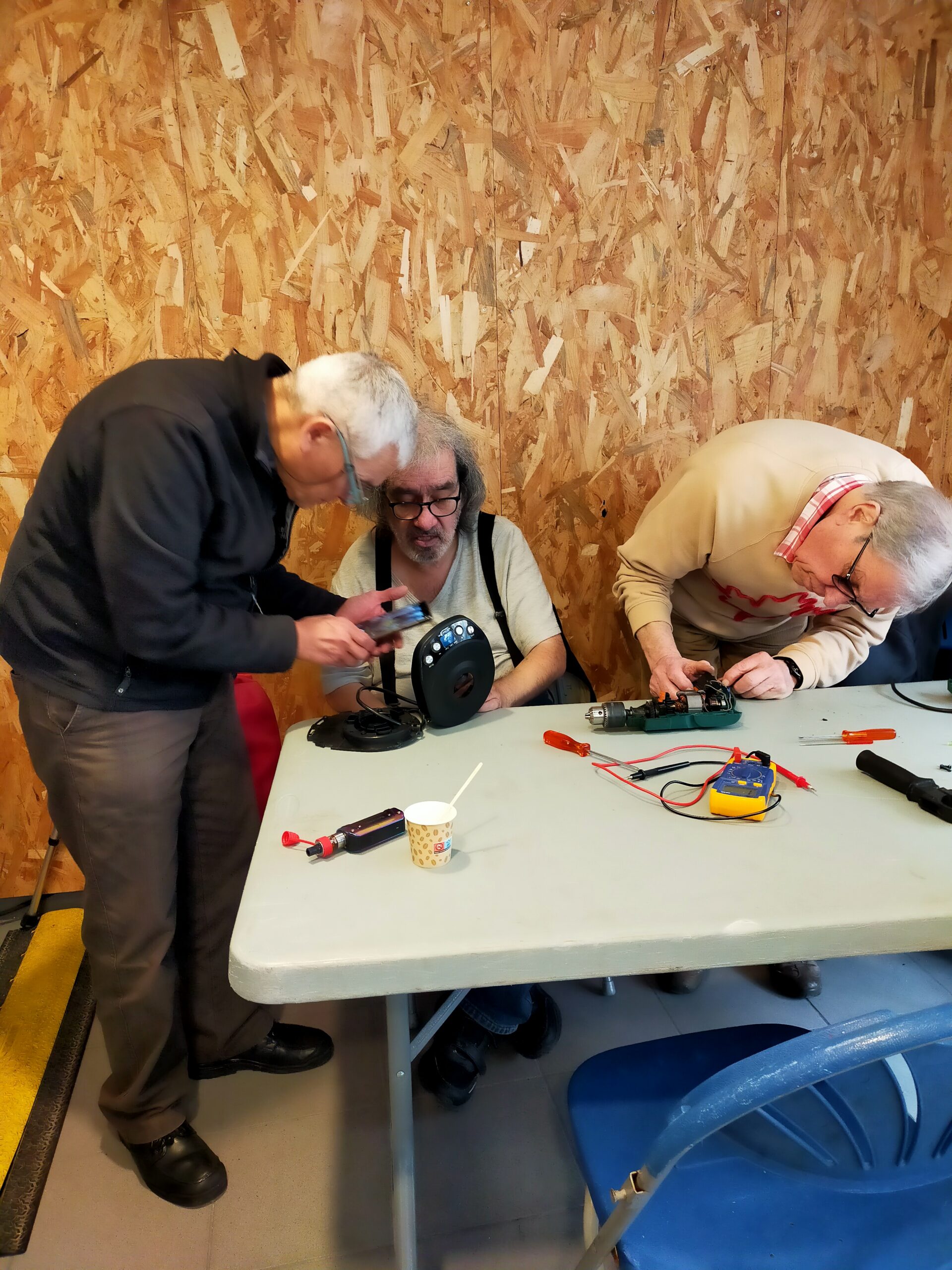 Tout au long de l’après-midi, 5 bénévoles ont accompagné 16 participants venus tenter de redonner vie à leurs petits appareils électroménagers, dans une ambiance conviviale, solidaire et coopérative.
