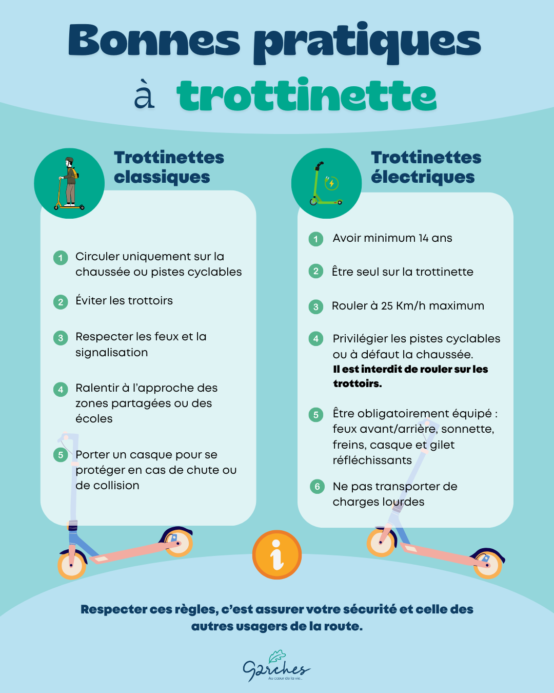 Avec le succès grandissant des trottinettes, électriques ou classiques, Garches voit de plus en plus d’usagers circuler sur ses voies. Or, la Ville a constaté des comportements à risque dans certaines rues, notamment près des écoles, des squares et du centre-ville.