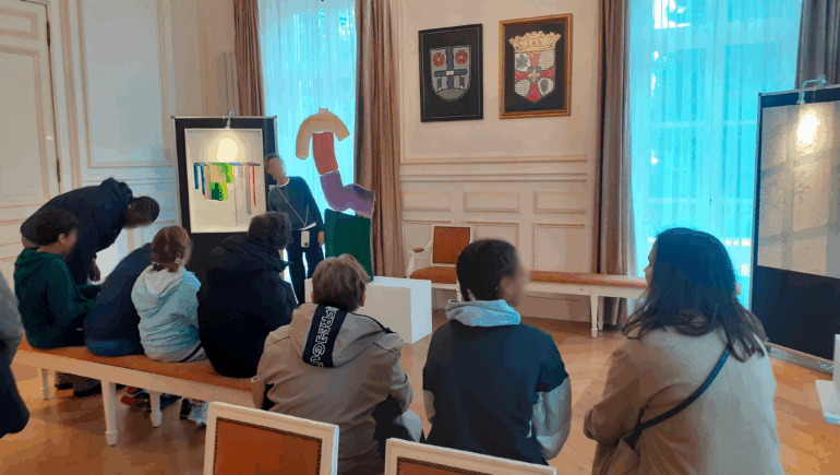 Garches a proposé une visite guidée du salon des Beaux-Arts en mairie animée par une conférencière pour les 2 classes ULIS de l’école Ramon et du collège Henri Bergson, respectivement les lundi 6 et vendredi 10 octobre. Après avoir présenté ce salon, cette dernière a mis en lumière certains artistes notamment l’invité d’honneur, Thibault Laget-Ro.