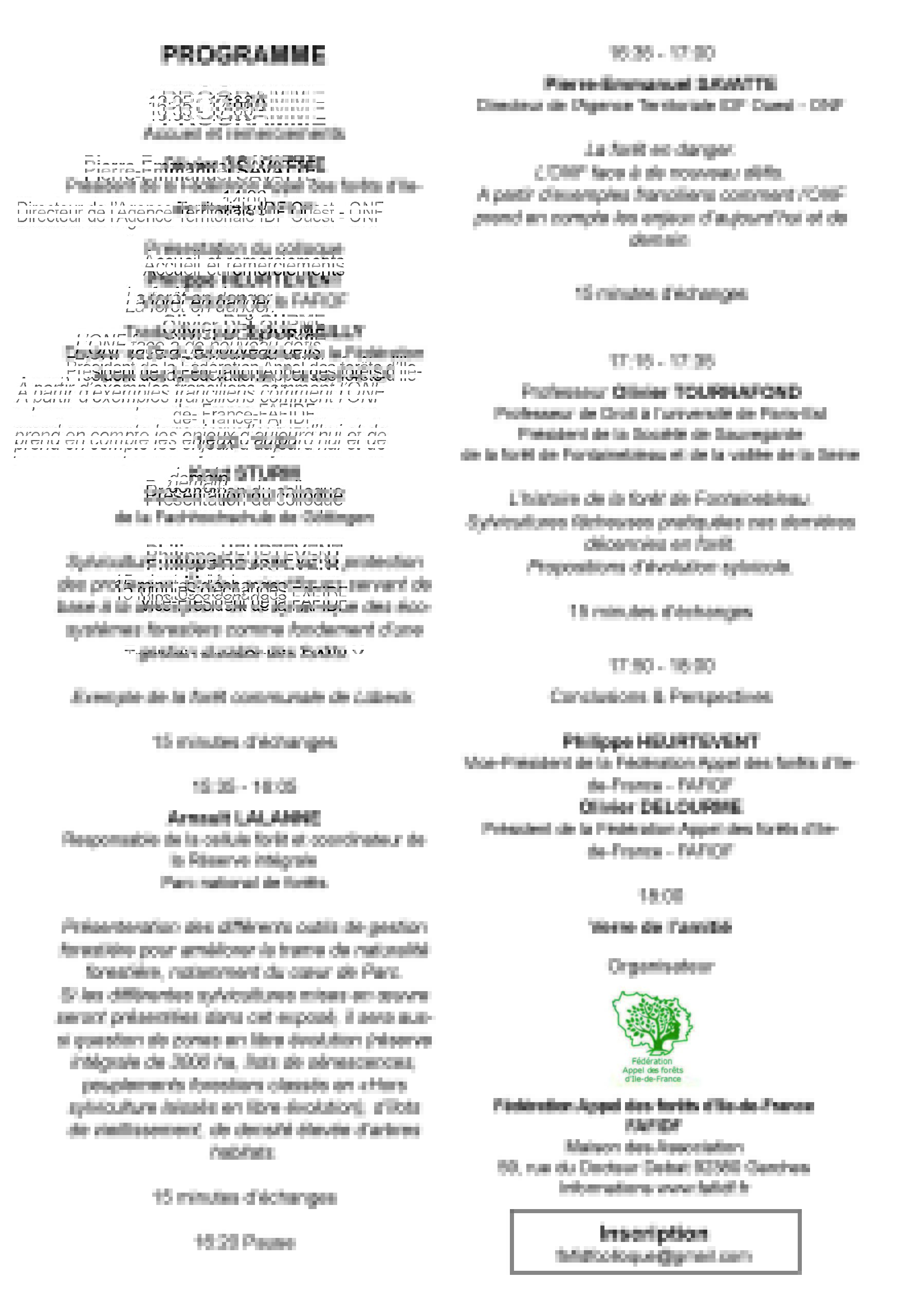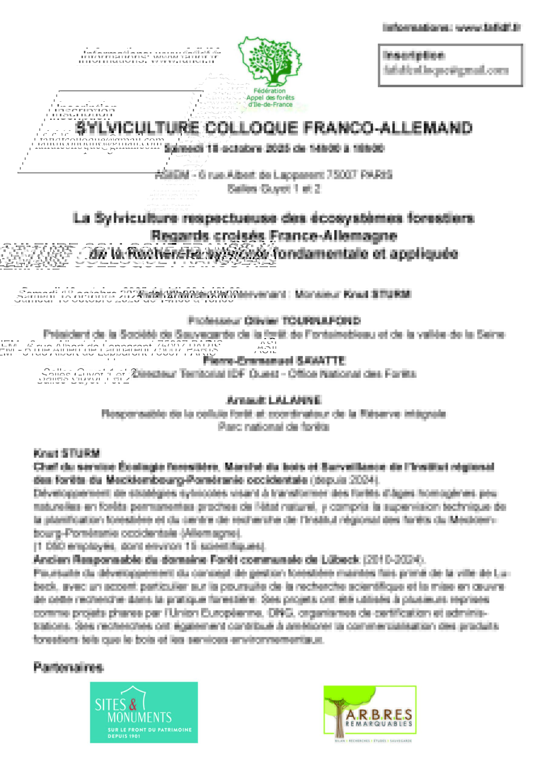 L’association garchoise, la Fédération Appel des Forêts d’Île-De-France (FAFIDF) organise, en partenariat avec Sites & Monuments et Arbres remarquables, le samedi 18 octobre, de 14h à 18h, un Colloque Franco-Allemand sur le thème de la sylviculture :