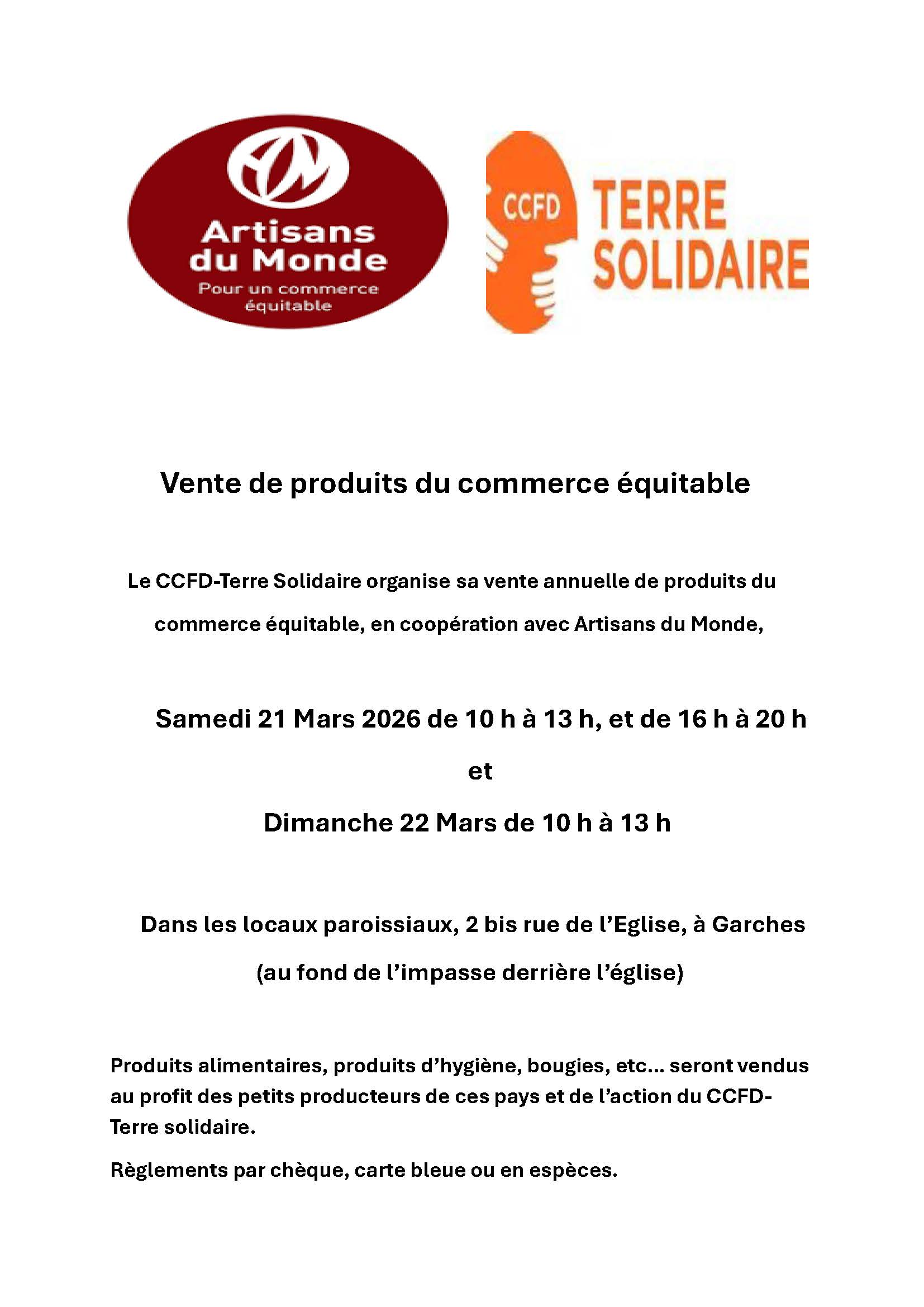 Le CCFD-Terre Solidaire organise sa vente annuelle de produits du commerce équitable, en coopération avec Artisans du Monde.